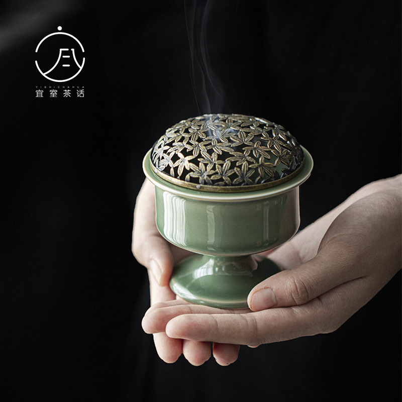 越窯青磁陶磁器香炉盤禅意檀香薫炉家庭用置物室内大篆安神香炉部品