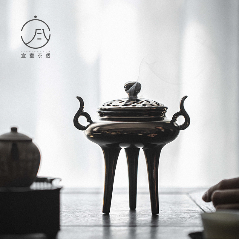 宜室茶話レトロ三足鼎香炉陶磁器香薫炉工夫茶器家庭用置物沈香炉香器
