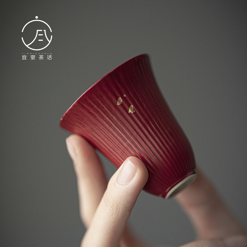 宜室茶話サンザシの赤いレリーフのストライプの陶磁器の杯の工夫の茶器の家庭用品の茗杯の単一の香りの杯