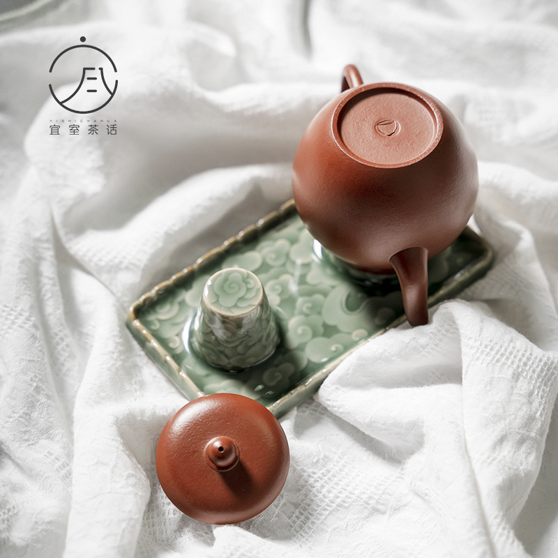 青磁の浮き彫り祥雲干し壺棚茶器洗浄干し器茶台置物紫砂壺蓋托茶道部品