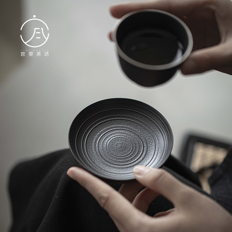 粗陶日本式陶磁茶カップマット丸型杯托カンフー茶道具手作り跳刀断熱マットレトロ茶道部品