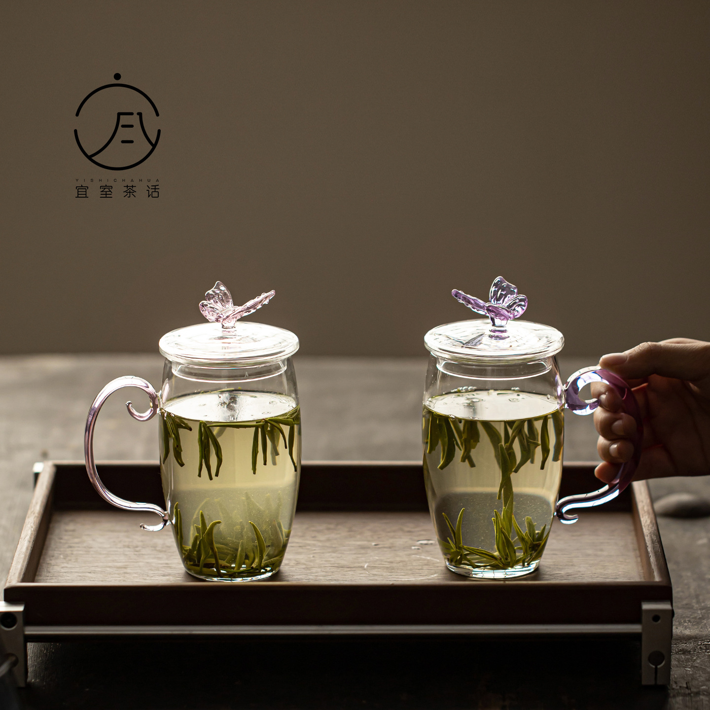 女性用の美しい透明なウォーターカップとマグカップ、ハンドル付きの家庭用のハイエンドの絶妙なティーカップを備えたYishi Tea Talk Glass