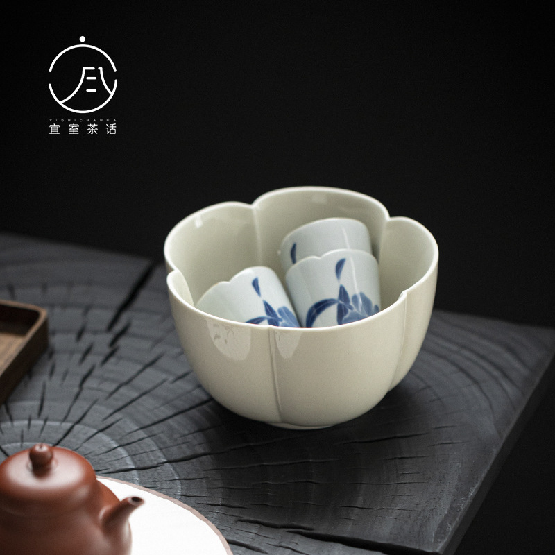 粗陶日本式草木灰釉花弁茶洗いカップ洗い濾過水洗い工夫茶道具水盆茶道部品
