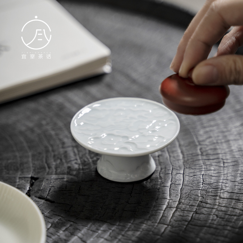手作りレリーフ高足祥雲蓋置紫砂壺蓋托レトロ茶台置物家庭用茶道部品卸売り