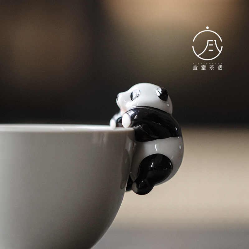 宜室のお茶の話のアイデアの陶磁器のパンダは碗のお茶の杯をかぶせて飾ります。