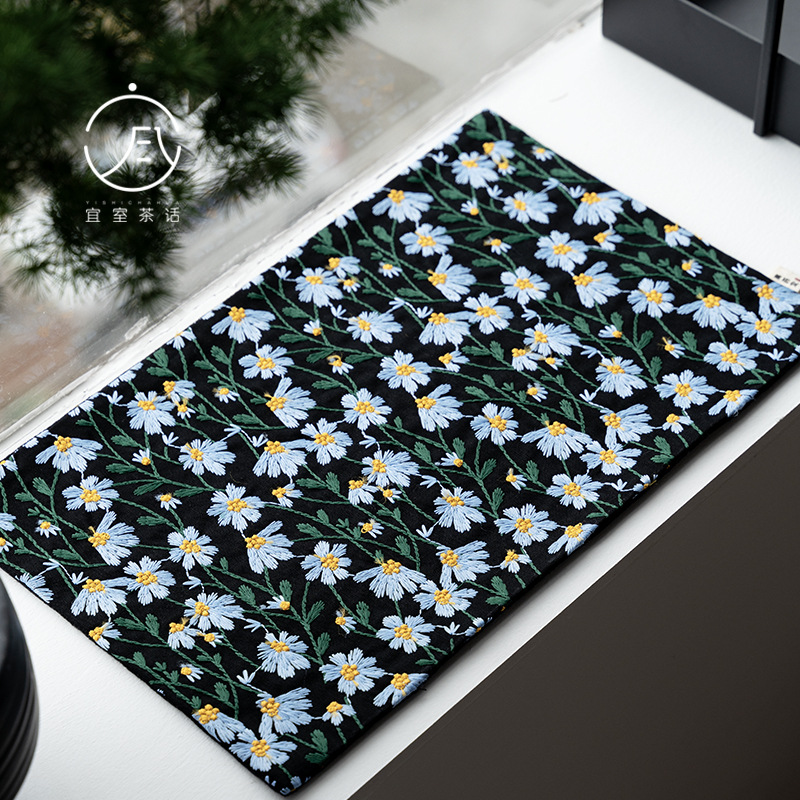 Yishitahua 中国風綿花刺繍ドライバブルマット中国禅茶道アクセサリーテーブルクロスティーマットティーマット