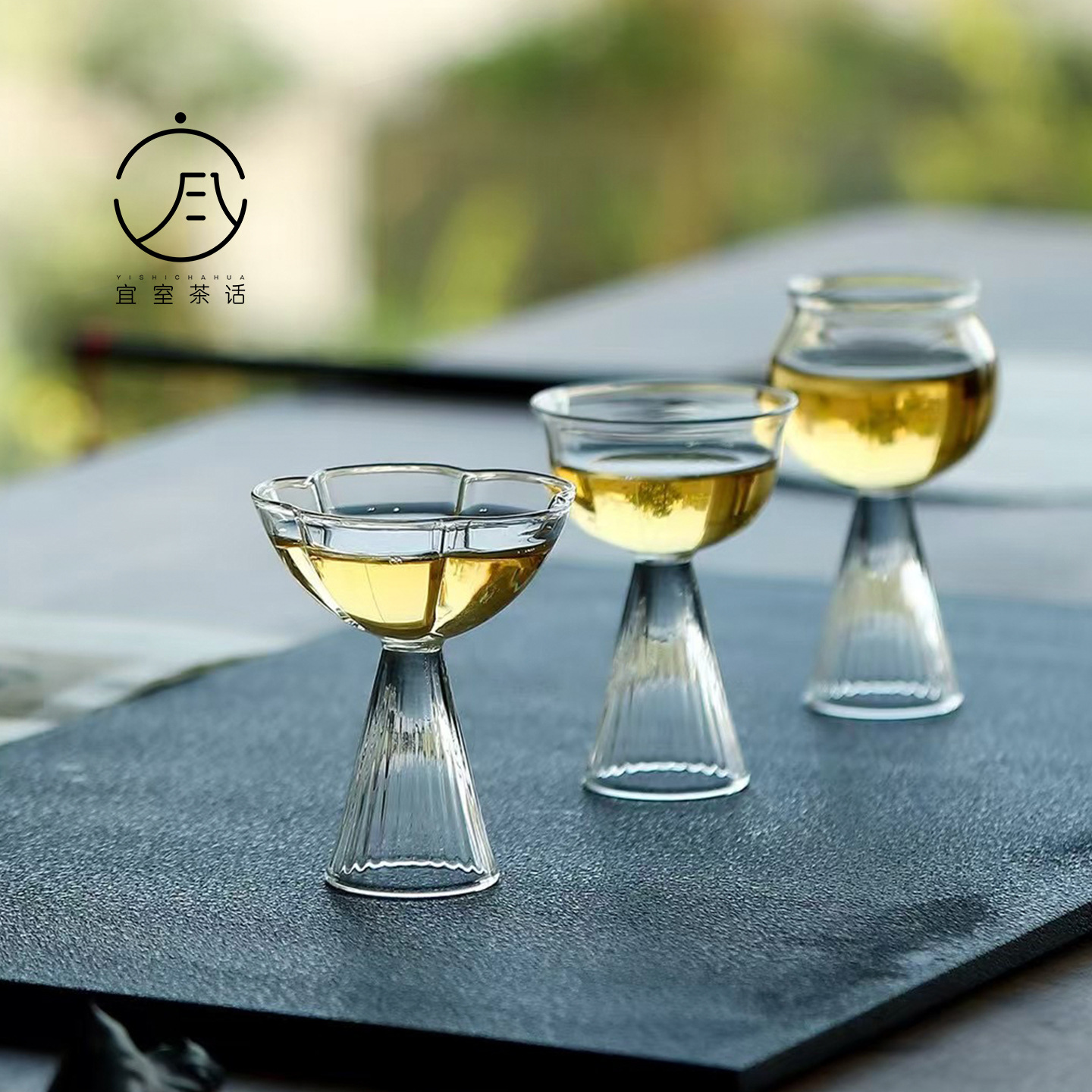 Yishi Tea 耐熱ガラス高足カンフー茶カップ中国風ホームマスターカップ香り茶カップパーソナルシングルカップ