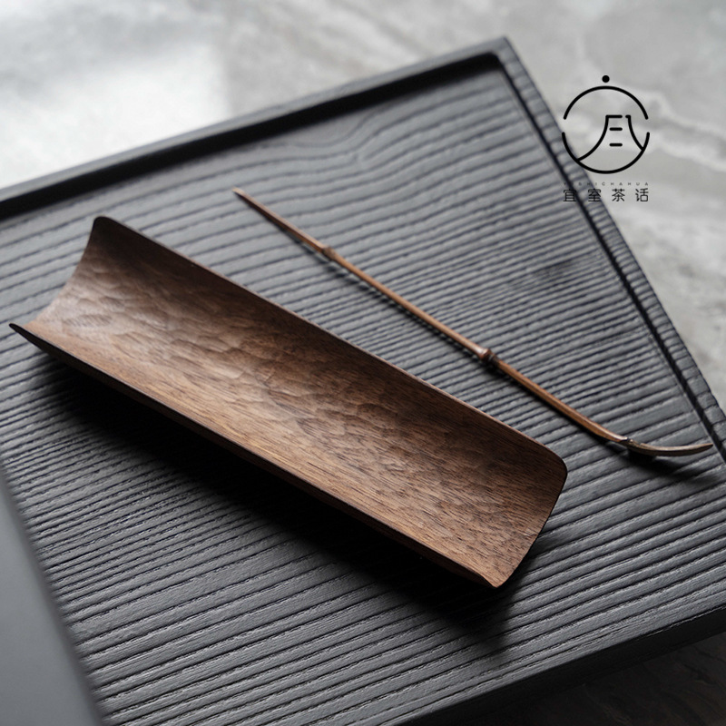 宜室茶話黒胡桃木茶則茶錠二点セットの実木賞茶器茶荷茶道六君子茶錠スプーン