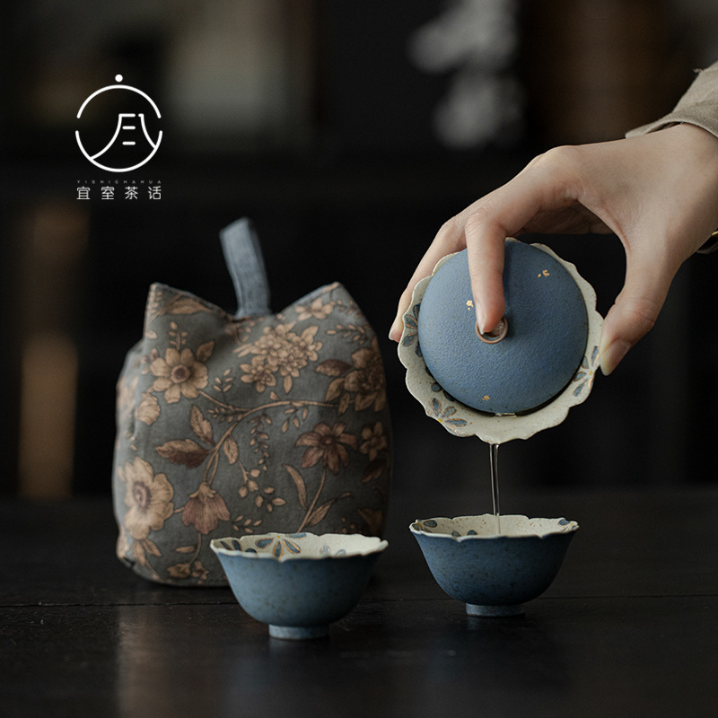 宜室のお茶の話の手描きの小さい菊は碗のお茶の杯の女性の1人をかぶせて屋外の携帯の工夫のお茶の小さいセットを飲みます。