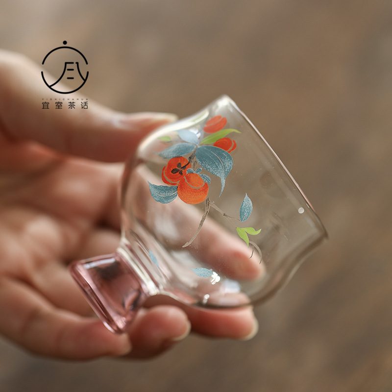 宜室茶話柿如意円融ガラスカップ耐熱高ホウ素シリコンマスターカップ工夫茶道具透明カップ
