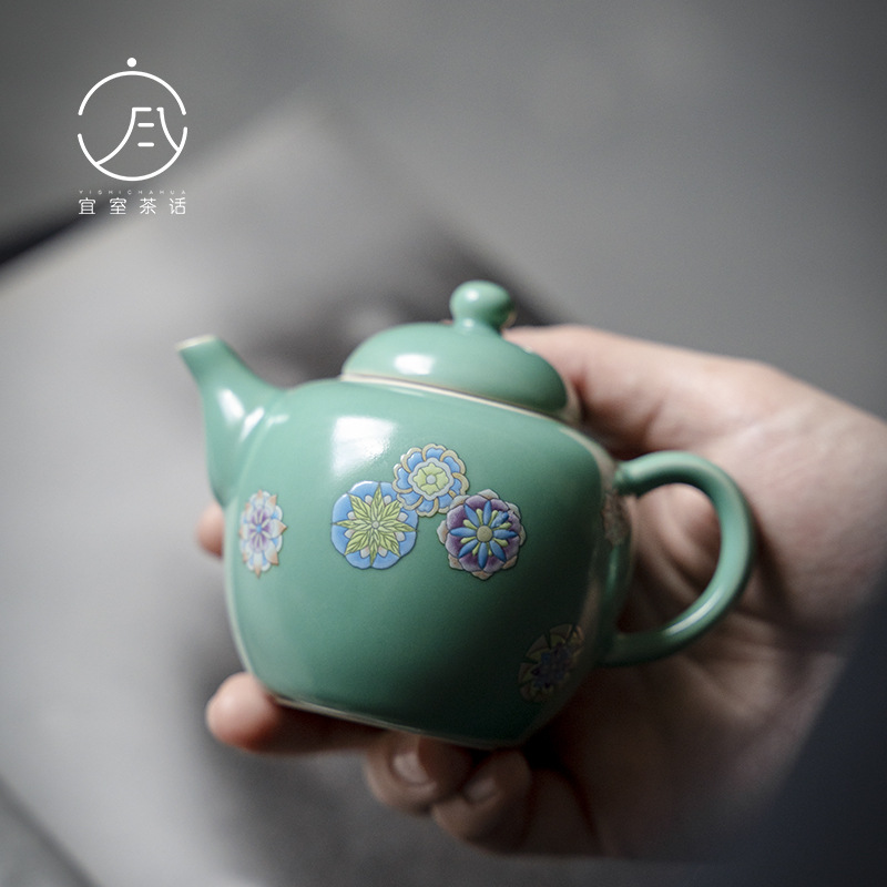 宜室茶話松石緑皮球花ティーポット工夫茶器陶磁器単壺家庭用ティーポット小壺