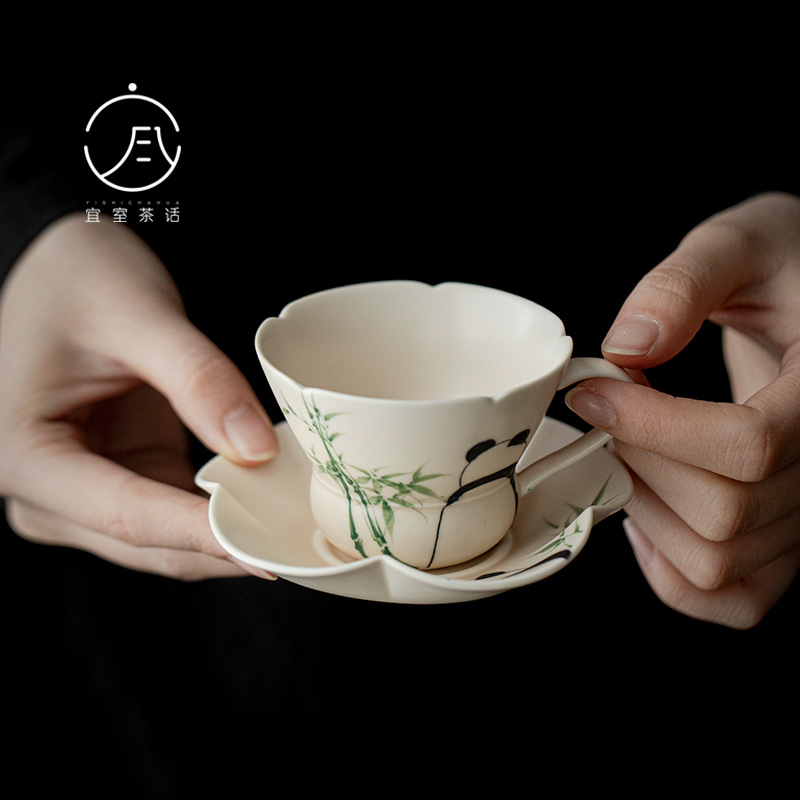 宜室茶話手描きパンダ劇竹陶磁器主人杯ミニコップお茶を飲むお茶茶杯コーヒーカップセット
