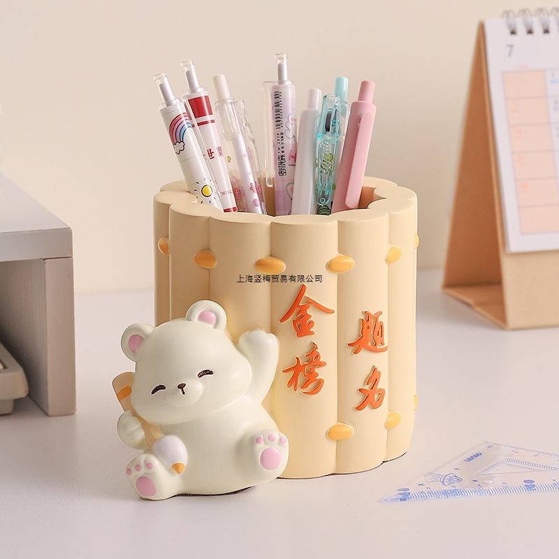 かわいい暴力的なクマのペンホルダー装飾品ゴールデンリストトップ着陸幸運インスピレーションデスクトップ装飾誕生日ギフト実用的