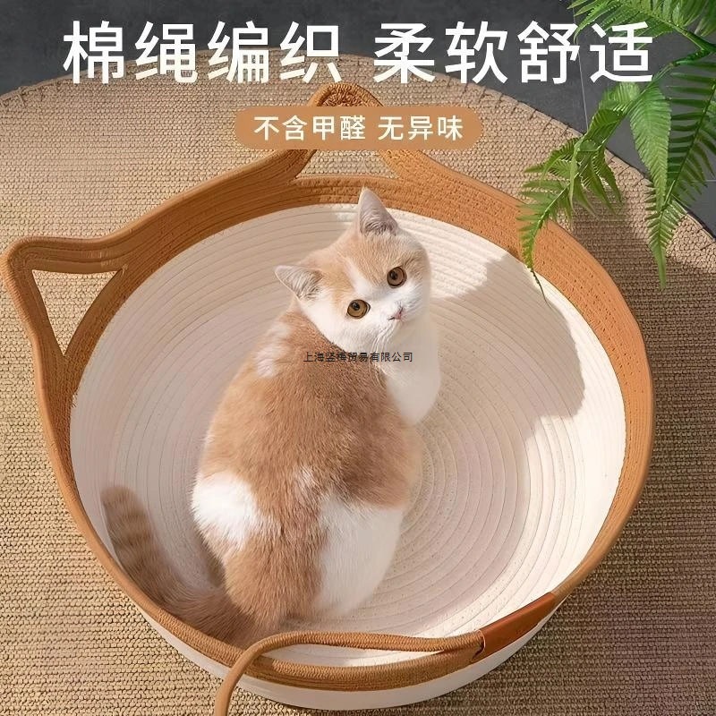 オールシーズン対応の黄麻籐猫小屋、夏用織り猫用品、睡眠マット、犬小屋、夏用ペットベッド