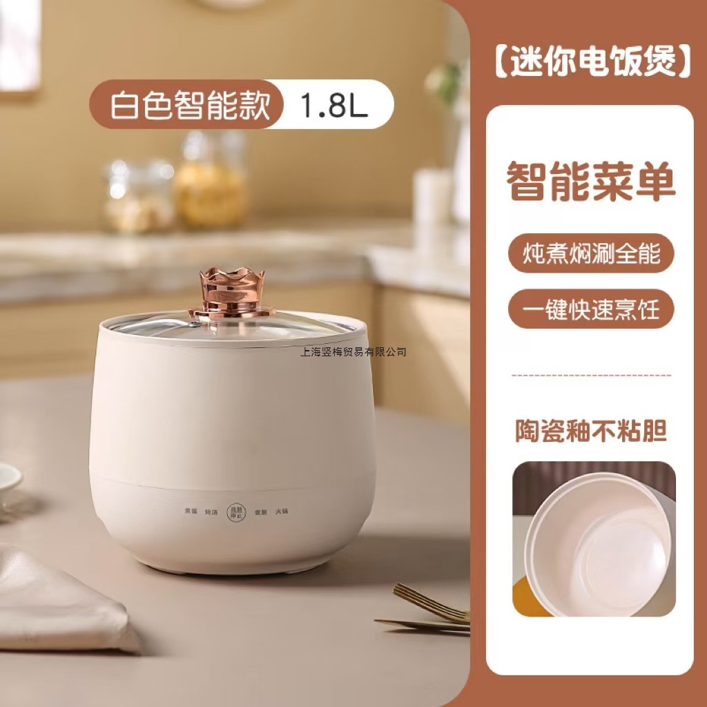 ミニ小型炊飯器家庭寮多機能ノンスティック炊飯器お粥スープ電気鍋 1.8L