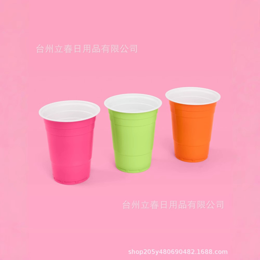 使い捨てプラスチックカップカラーゲームカップビールグラス卓球カップ16オンス二色カップパーティーカップ