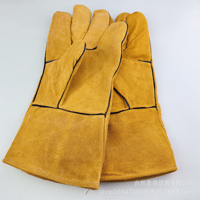 工友黄二重裏地布点溶接断熱保護電気溶接用手袋、耐摩耗性、耐熱性革手袋
