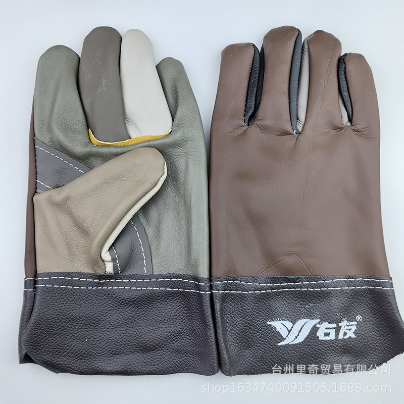 七色の電気溶接手袋の短い全皮溶接工の耐摩耗断熱機械埠頭は労働保護手袋を運びます。