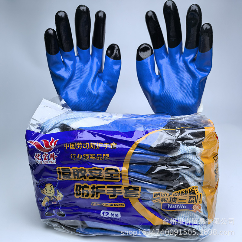 優宝隆13針ナイロンニトリルゴム手袋にゴムをかけて、耐摩耗性防汚防油汚れ防止切断傷全体を郵送します。