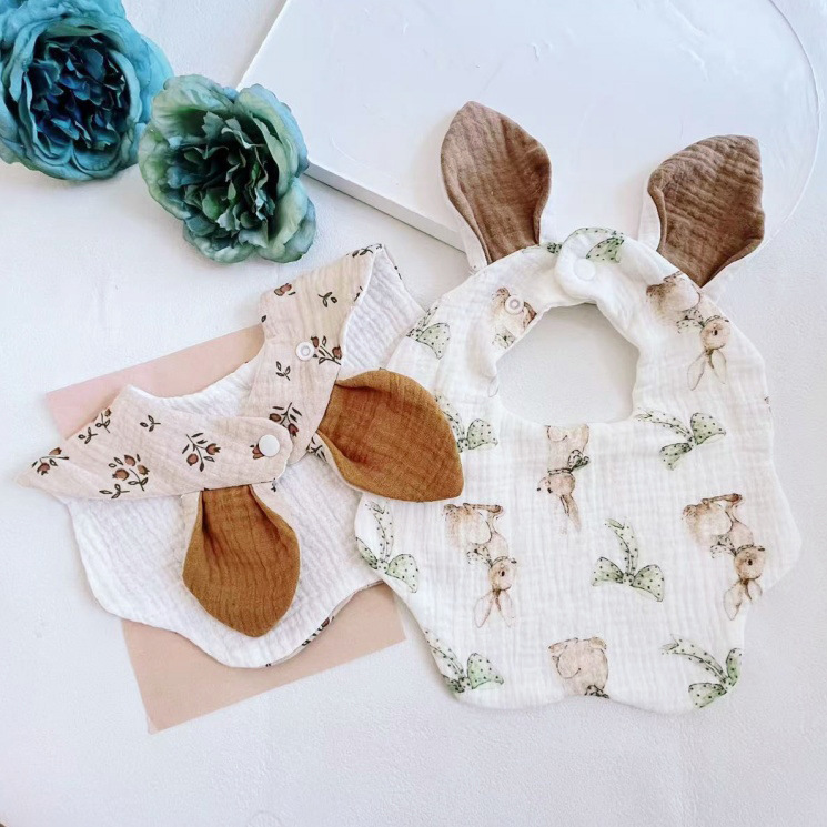 ベビーピュアコットンクレープ唾液タオルかわいいガーゼウサギ耳マルチカラーよだれかけタイプA 4層糸防汚唾液よだれかけ