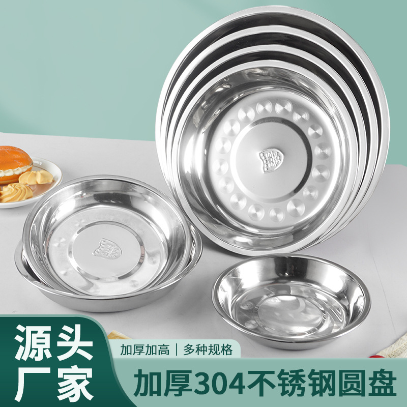 304ステンレス円盤レストラン食堂料理皿家庭用餃子皿鉄皿厚い果物皿浅皿