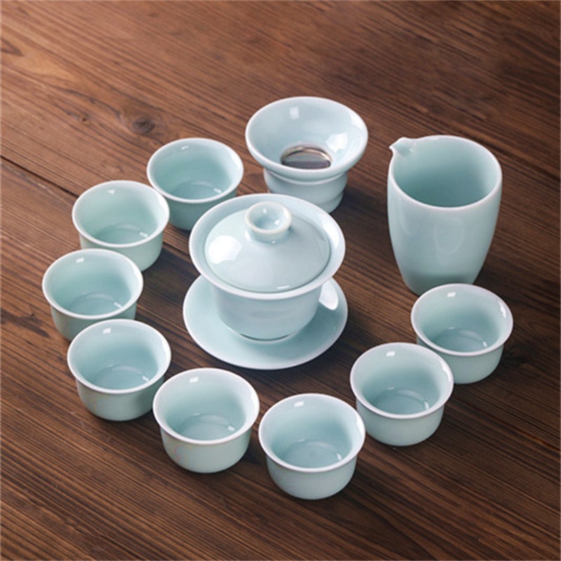 青磁茶器セット蓋碗ティーポットセットの工夫茶芸影青西施壺陶磁器家庭用オフィス茶器