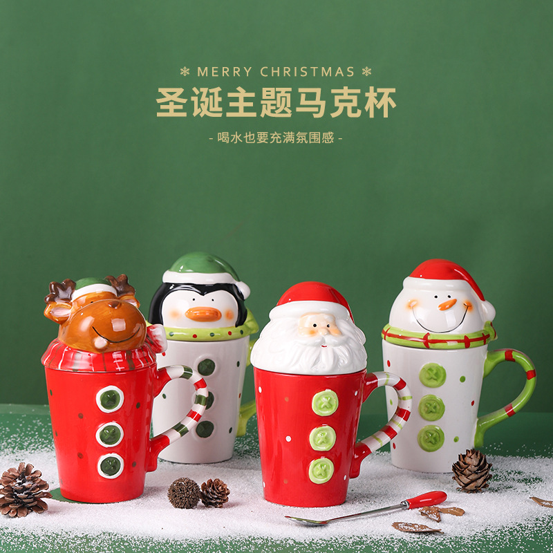 クリスマスのテーマのコップのプレゼントの老人のヘラジカのペンギンの雪だるまの陶磁器のマグカップのカップルのコーヒーカップのプレゼントの服