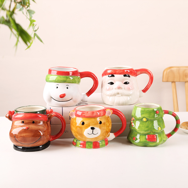 祝日の贈り物のコップ欧米の手描きの陶磁器の熊のヘラジカの牛乳の杯の雪だるまのコーヒーの杯のクリスマスツリーのマグカップ
