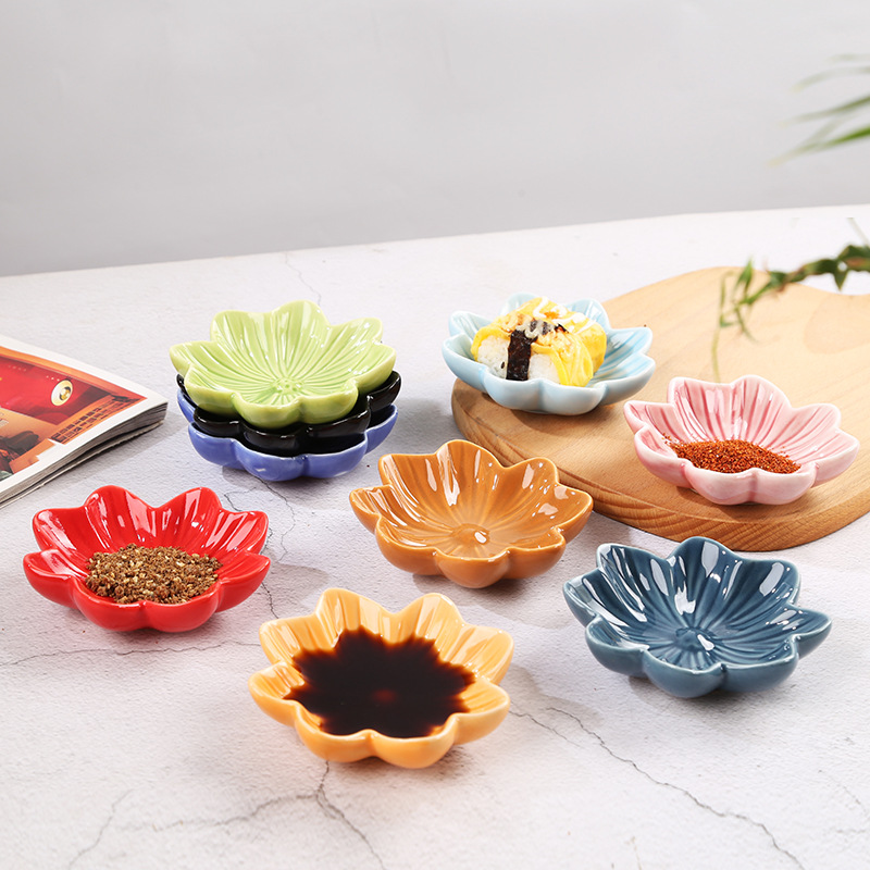 日本式の創意陶磁の小さい花の皿の味の皿の家庭用の醤油の調味料の皿の軽食の皿の酢の皿