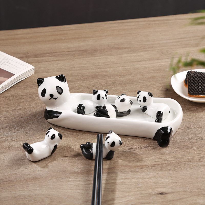 漫画のパンダの陶磁器の箸の棚の皿の酢の皿の果物の皿の家庭用レストランの置物のかわいいパンダの置物