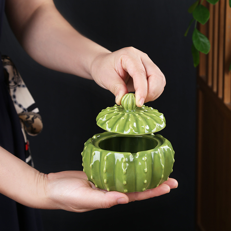 創意個性陶磁器仙人球灰皿収納ケース密封缶茶葉缶家庭用小型灰皿卸売り
