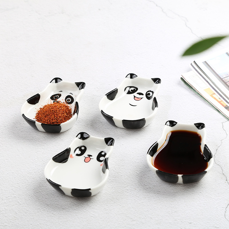 クリエイティブかわいい漫画パンダ陶磁器皿家庭用クリエイティブスナック皿ソース皿油皿調味料小菜味皿