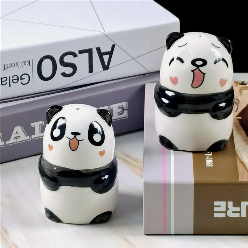 かわいい漫画のパンダの個性的な楊枝筒の陶磁器の小さい置物の調味料の塩のクミンの小さい缶の家庭用の胡椒の瓶