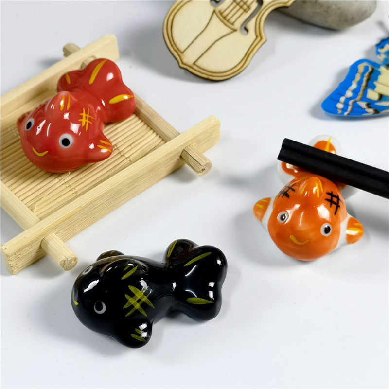 かわいい金魚の陶磁器の置物の漫画の動物の箸の托の箸の棚の小さい魚の食卓の置物の箸の小さい托