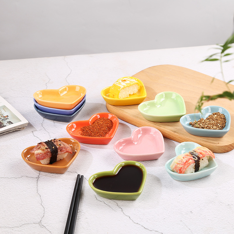 日本式ハート型の酢皿の陶磁器の小皿の台所は多く調味料の小皿の小皿の家庭用調味料の酢の食器を使います。