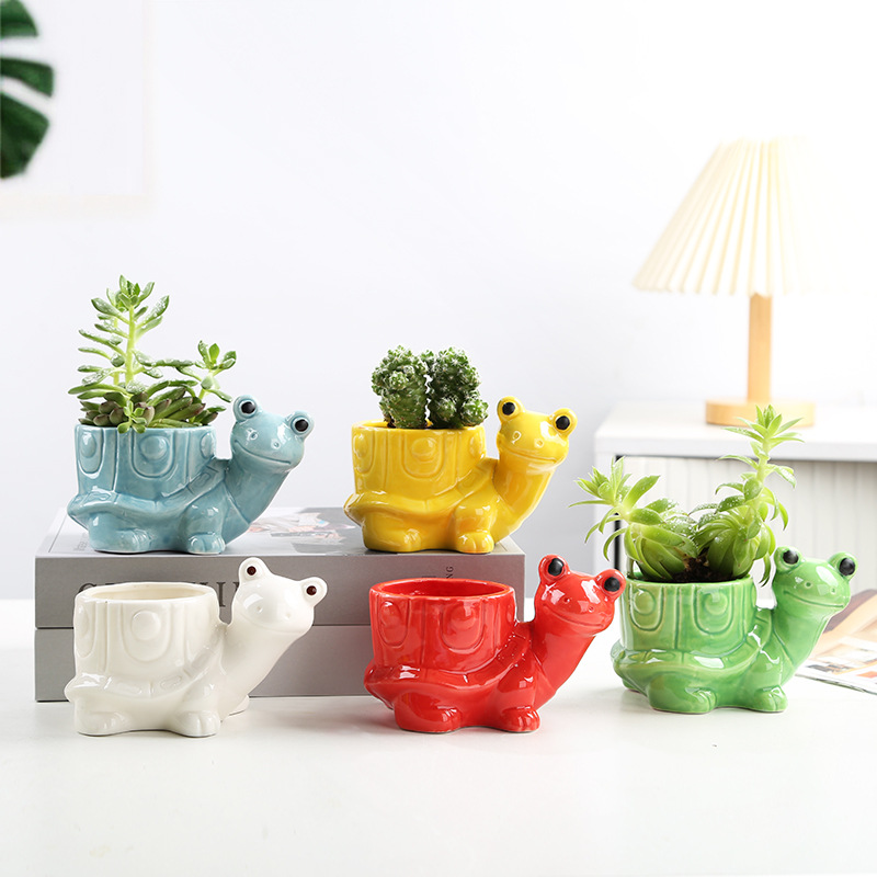 メーカー直販亀陶磁器多肉植物植木鉢かわいいミニ小動物デスクトップ鉢植え個性花器