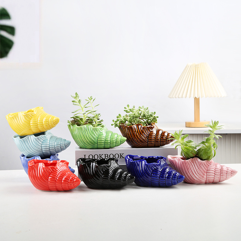 創意漫画海螺陶磁器多肉小植木鉢オフィスベランダ装飾植木鉢肉多緑植鉢植え花器