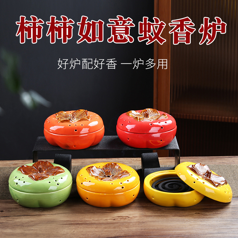 柿如意陶磁柿防火蚊取り線香ボックス香炉沈香室内焼香ボックスホノルルアロマトレイホルダー