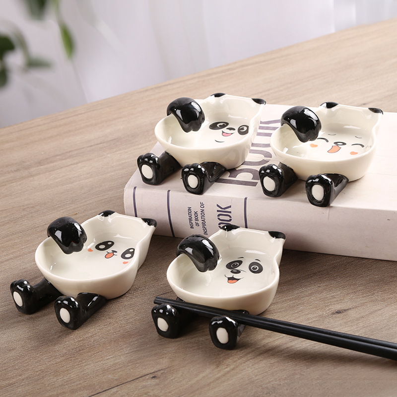 かわいい漫画のパンダの陶磁器の箸の棚の日本式の箸を入れる小さい托の家庭の箸は食卓の箸を支えて置物を並べます。