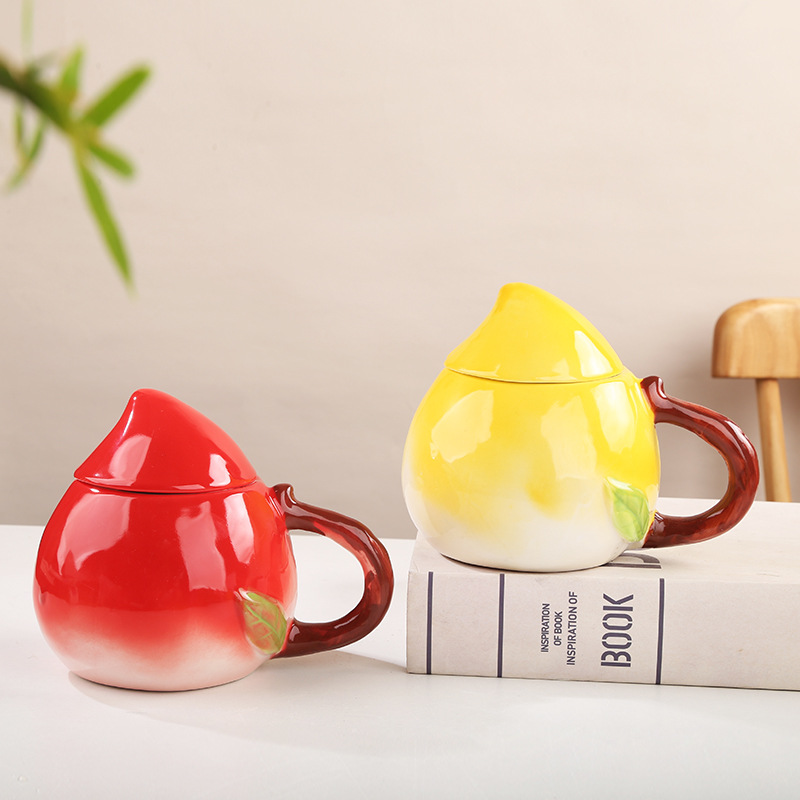 創意桃陶磁器コップ誕生日お土産寿桃マグカップ家庭用コーヒーカップ事務蓋付きミルクカップ