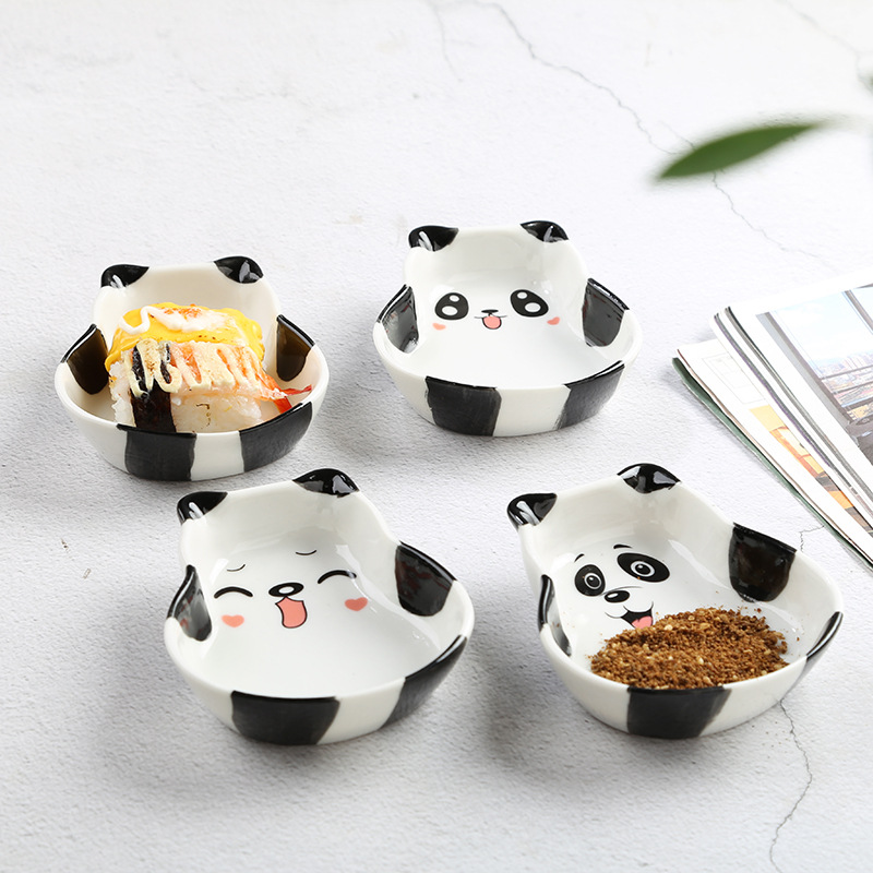 アニメかわいいパンダ陶磁器皿家庭用クリエイティブ食器セット卸売り醤油皿小味皿小料理皿
