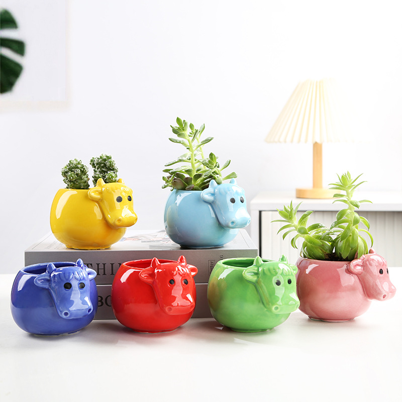 かわいい小動物陶磁器多肉緑植植木鉢アニメ子牛ミニ植物花卉花器工場直販