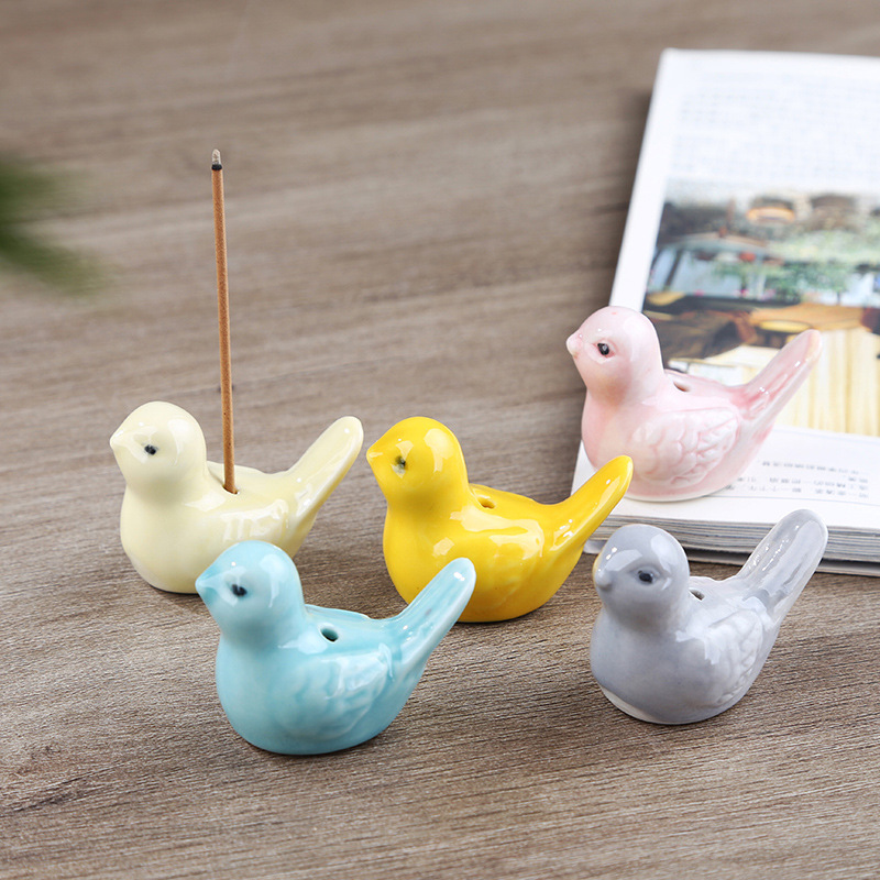 アニメ陶磁器小鳥線香香挿香座メーカーバッチ創意禅意香托個性デスクトップ置物工芸品