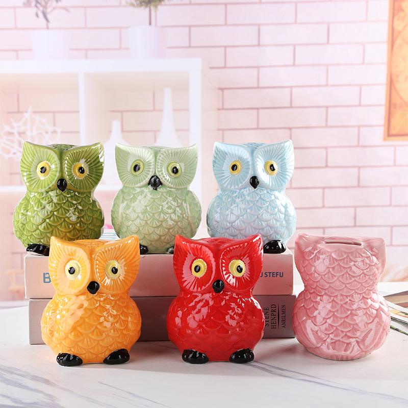 クリエイティブ子供貯金箱かわいい漫画フクロウセラミック貯金箱誕生日プレゼント装飾品個性置物