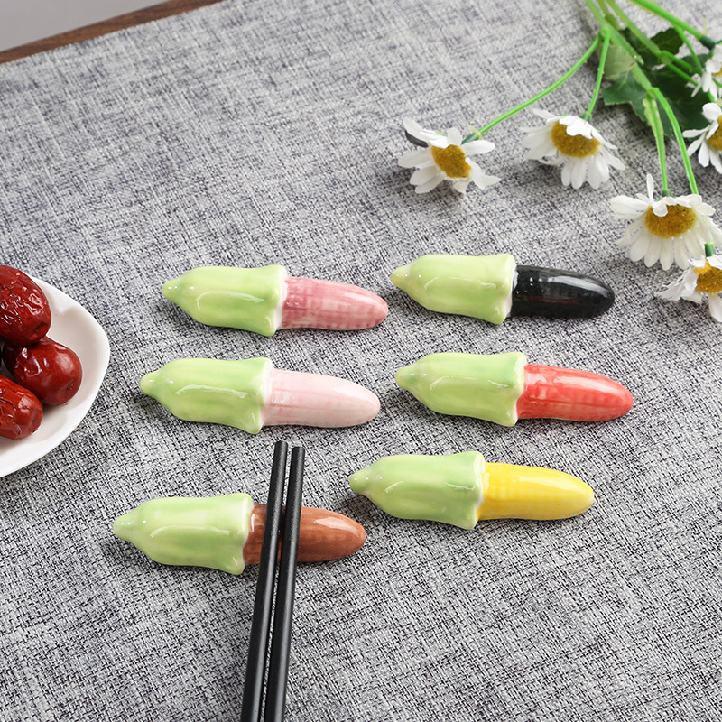 創意陶磁器のトウモロコシの箸立ての箸立てホテルの食器の手描きのトウモロコシの箸の枕の家庭の工芸品の小さい置物