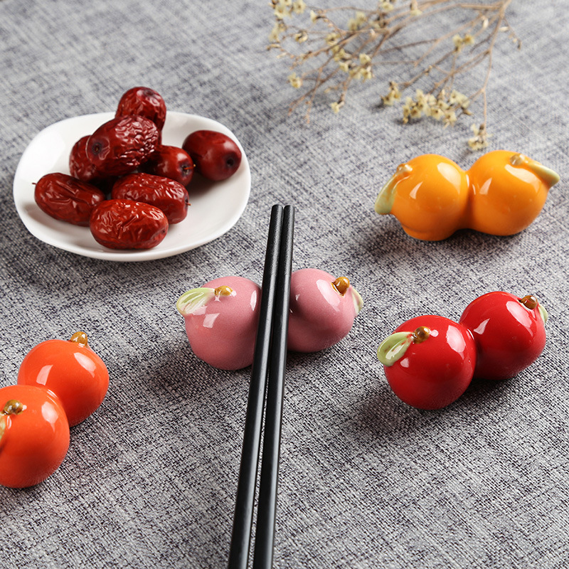 福寿の小さい桃の陶磁器の箸の棚の個性の食卓の置物の家庭用箸の枕の寿桃の工芸品の小さい置物