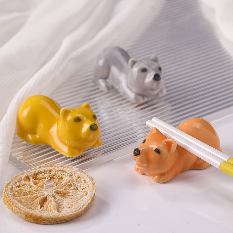 日本式のアニメの萌え趣味の子犬の箸の棚のアイデアの陶磁器の柴犬の置物の精巧な家庭の子犬の托の碗の棚の箸の枕