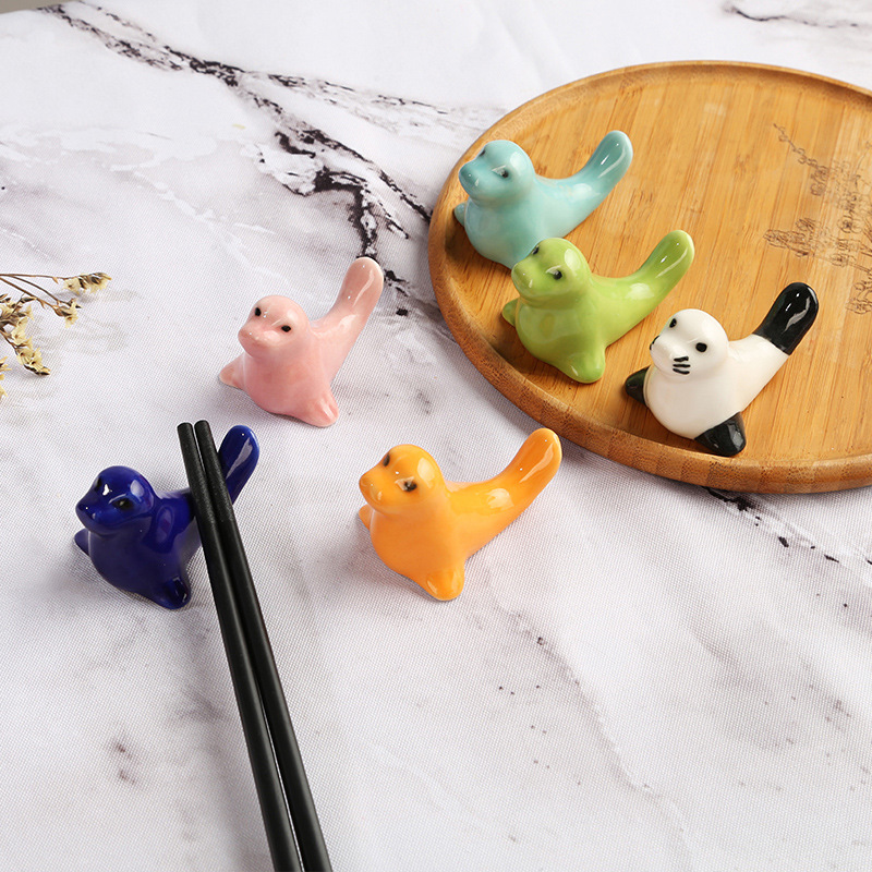 創意海洋生物アザラシ箸棚箸枕置い箸家庭用陶磁器色釉日本式可愛い置物