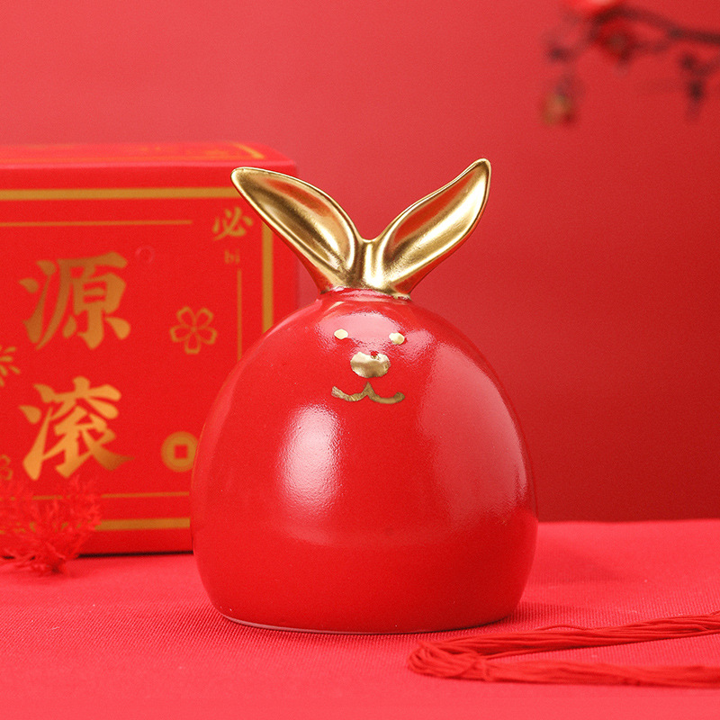 子供の贈り物陶磁器のウサギの貯金箱ウサギの年の贈り物保険銀行のロゴの貯金箱はお客様にプレゼントします。