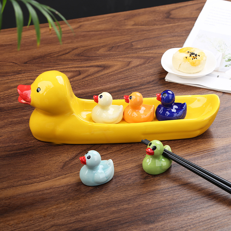 日本式の創意の小さい黄色のアヒルの陶磁器の箸の棚の漫画のかわいいアヒルの箸はテーブルの箸の枕の創意の小さい置物を引っ張ります。